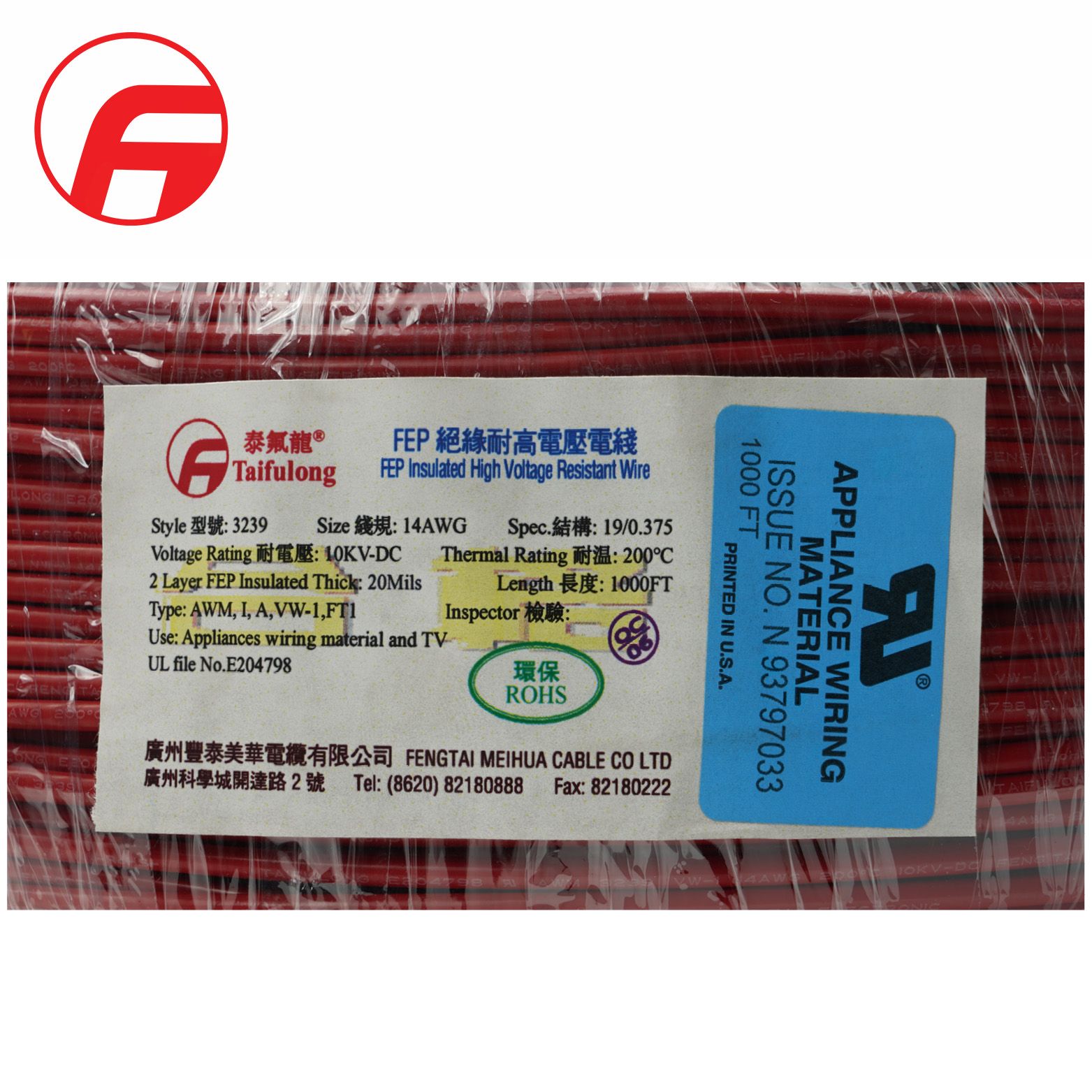 | Insulation | FEP Taifulang" Fluoroplastic. with a variety of Standard Colors Available |