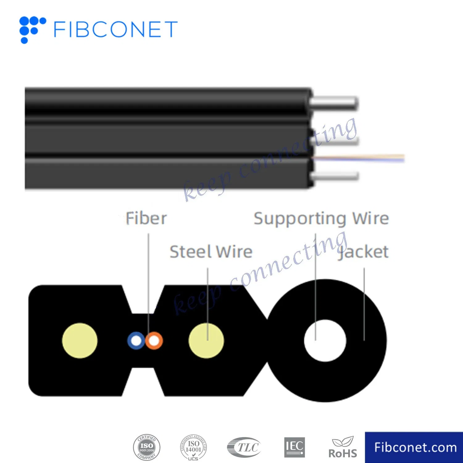 Fiber optic Drop cables for telecommunication(Bow-type),suitable for optical fiber to the user (FTTH) network ,users to introduce the section of the cable, but also apply to the Office (FTTO) and optical fiber to the building (FTTB) ,and other optical fiber access network users to introduce the section of the optical cable.