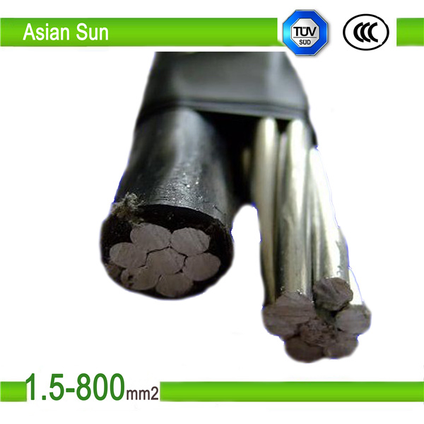 AAC AAAC Conductor XLPE PE PVC insulated 0.6/1kv abc cable (1*70 )Basic ConstructionThree power cores consisting of standard aluminum conductors, insulated with XLPE insulation + One sheath lighting aluminum conductor with XLPE insulation (optional) + One messenger Al-alloy conductor (bare or covere......